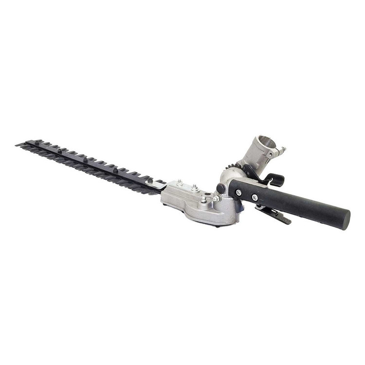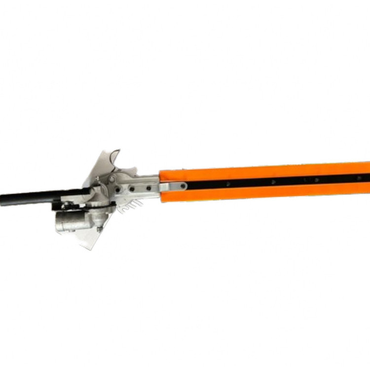 شمشادزن الحاقی علفتراش یکی دیگر از قطعات پر کاربرد و مفید روی دستگاه های علف تراش می باشد که امکان کوتاهی و فرم دهی انواع شمشاد، درختچه های تزئینی و انواع درخت کاج را فراهم می آورد. از مزایای الحاقی شمشادزن قابلیت تنظیم زاویه کار از صفر تا 180 درجه می باشد که امکان اصلاح گرین وال (دیوار سبز) با ارتفاع بیش از 3 متر را فراهم می آورد. سیستم عملکرد الحاقی شمشادزن به صورت شانه ای رفت و برگشتی می باشد که از یک تیغه ثابت و یک تیغه متحرک تشکیل شده، با حرکت شمشاد زن به چپ یا راست برگ و ساقه کیاهان بین دو تیغه ثابت و متحرک گیر افتاده و عمل برش انجام می شود. ااحاقی شمشادزن باقطر29 و شفت 9خار میباشد.