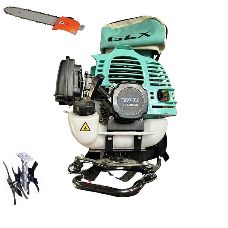 علف زن پشتی جی ال ایکس مدل CG-BG520 به همراه الحاقی اره و الحاقی روتیواتور
