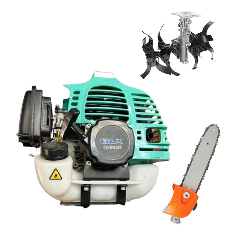 علفتراش دوشی GLX به همراه الحاقی اره و الحاقی روتیواتور میباشد که بسیار کاربردی است .و با حجم موتور ۵۲ سی سی با موتور دو زمانه میباشد