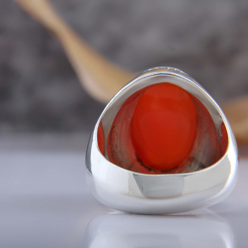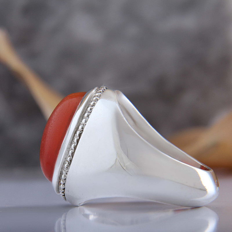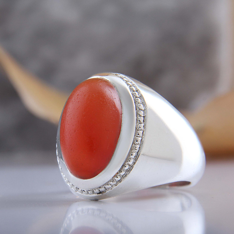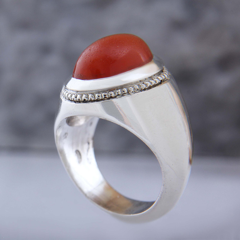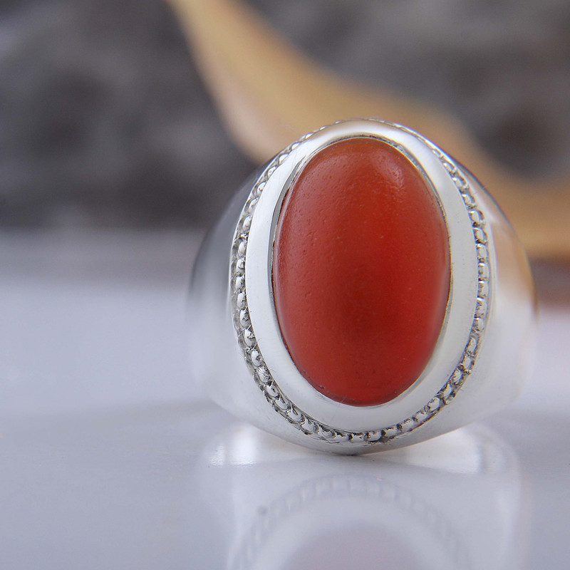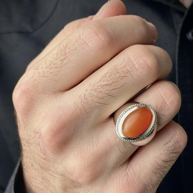 انگشتر نقره مردانه بازرگانی میلادی مدل رکاب فیلی دستساز عقیق کهنه یمن کد AM_4615