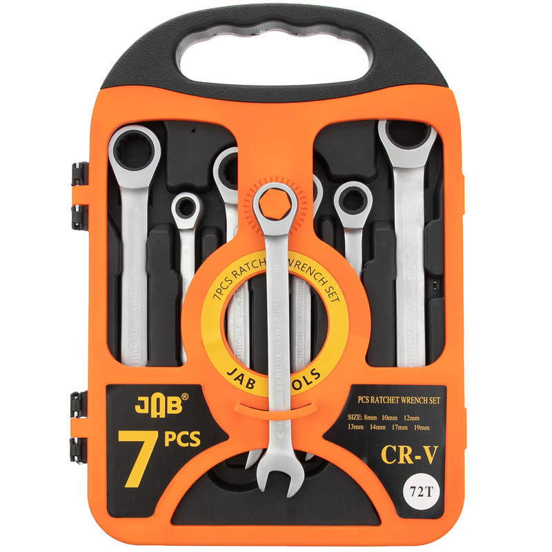 مجموعه 7 عددی آچار جغجغه ساخته شده از استیل زد زنگ و ضد خش (کروم وانادیوم) دارای روکش مات بسیار با کیفیت و مقاوم عمر طولانی دنده ریز