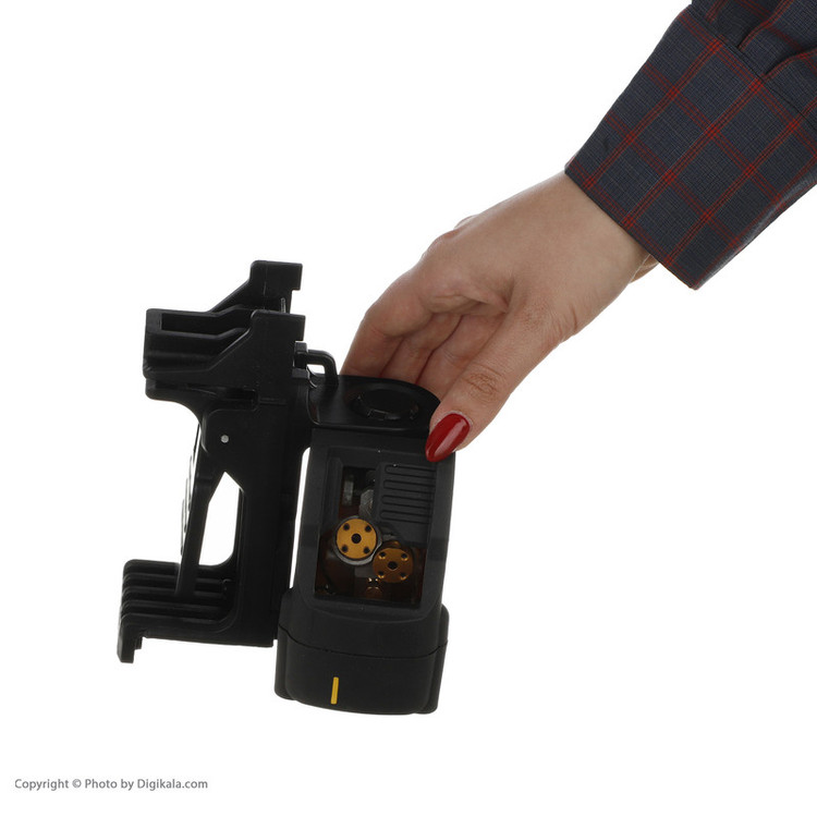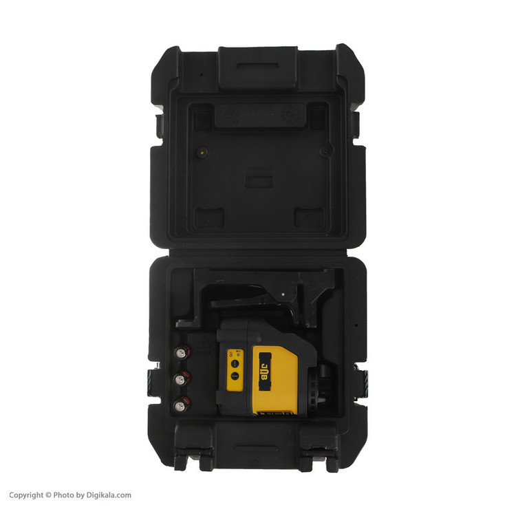 تراز خودکار دو خطی ( افقی و عمودی ) - دارای دو دکمه برای خاموش و روشن کردن لیزر افقی و عمودی با نگه داشتن دکمه خط افقی دستگاه روشن می شود. قابلیت نصب سه پایه دوربین
