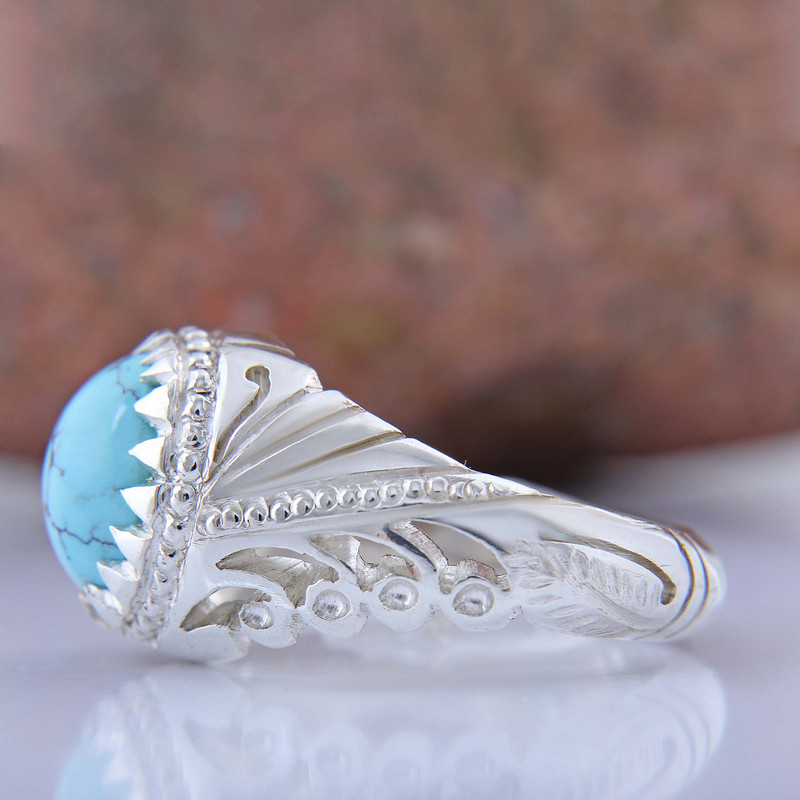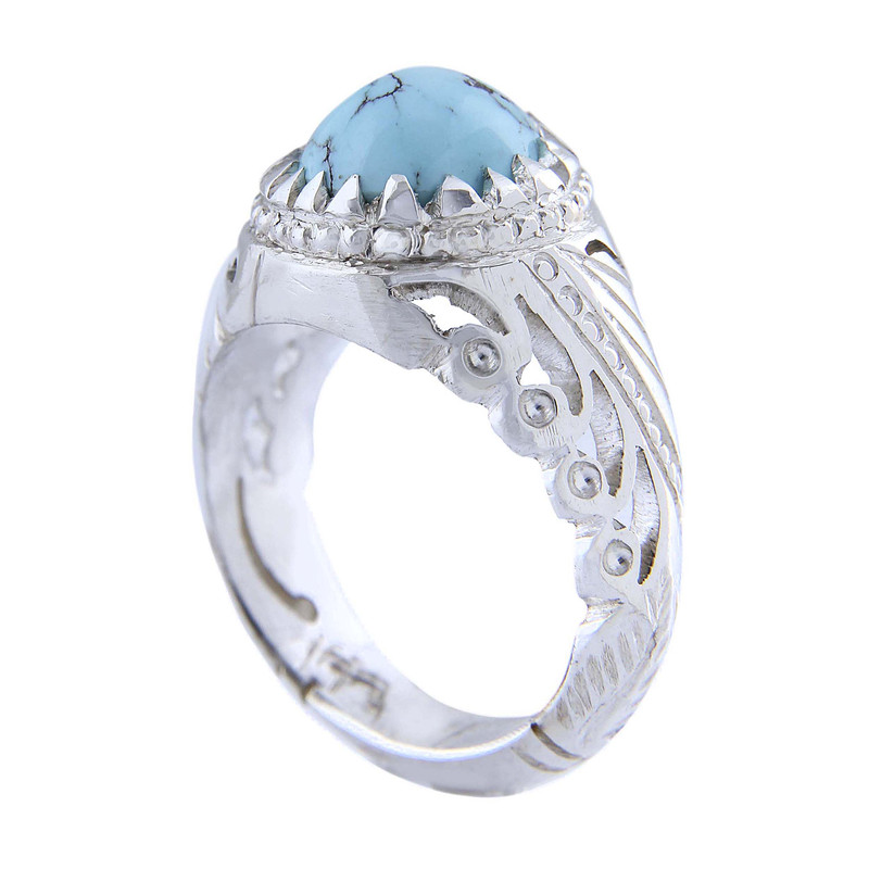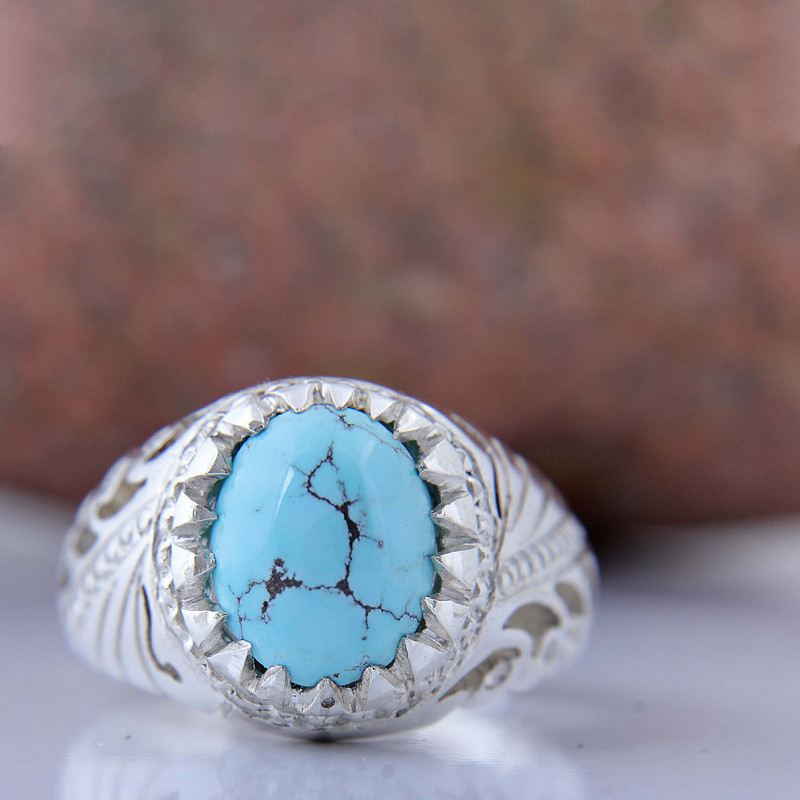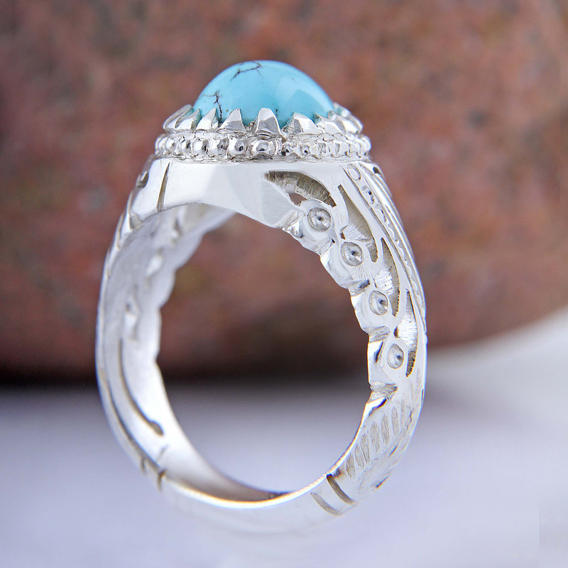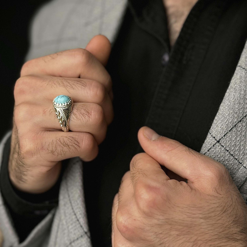 اگر دنبال خرید انگشتر نقره هستید این انگشتر نقره فیروزه طبیعی نیشابور رکاب دستساز نقره عیار بالا که با دقت و ظرافت بالایی ساخته شده است گزینه مناسبی برای عاشقان انگشتر میباشد. سنگ فیروزه سنگی است که در شرایط محیطی مناسب جلای خود را حفظ می کند. کدر نشده و همواره به همان رنگ آبی زیبا باقی می ماند. همین ویژگی باعث شده است تا این سنگ زیبا به سنگ فیروزه زنده نیز مشهور شود. چرا که همچنان زنده و پویا زیبایی ظاهری اش را حفظ می کند. اما علاوه بر این ویژگی سنگ فیروزه خواص ویژه ای برای آقایان دارد که در ادامه آن ها را معرفی خواهیم کرد. قدرت و اعتماد به نفس سنگ فیروزه به مردان کمک میکند تا قدرت و اعتماد به نفس خود را افزایش دهند. این سنگ به عنوان یک سنگ قدرتمند و پایدار شناخته میشود و میتواند مردان را در مواجهه با چالشها و مسئولیتهای زندگی قویتر کند خاصیت انگشتر فیروزه در همین موضوع نهفته است. به همین دلیل است که توصیه می شود تا از انگشتر فیروزه استفاده کنید. حفظ تعادل روحی و احساسی: سنگ فیروزه میتواند به مردان کمک کند تا تعادل روحی و احساسی خود را حفظ کنند. این سنگ به عنوان سنگ آرامش شناخته میشود و میتواند به مردان در مقابل استرس و اضطراب مقاومت کمک کند.
