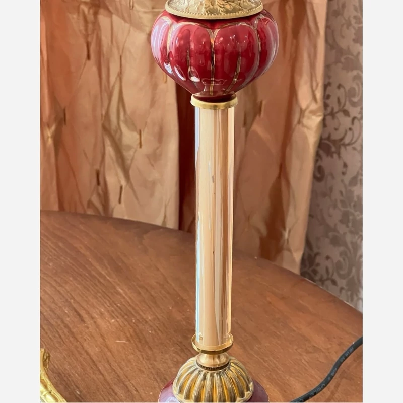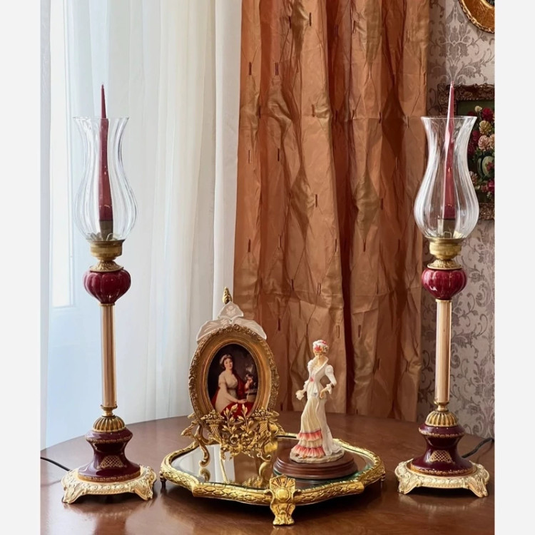 آباژور رومیزی شمعدان چینی برنز برقی لوکس