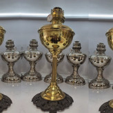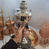 چراغ گردسوز جکدار برنجی با روکش کروم با ارتفاع قابل تنظیم و فتیله گرد و نفت سوز مناسب استفاده دائم و قابل شستشو