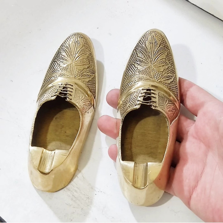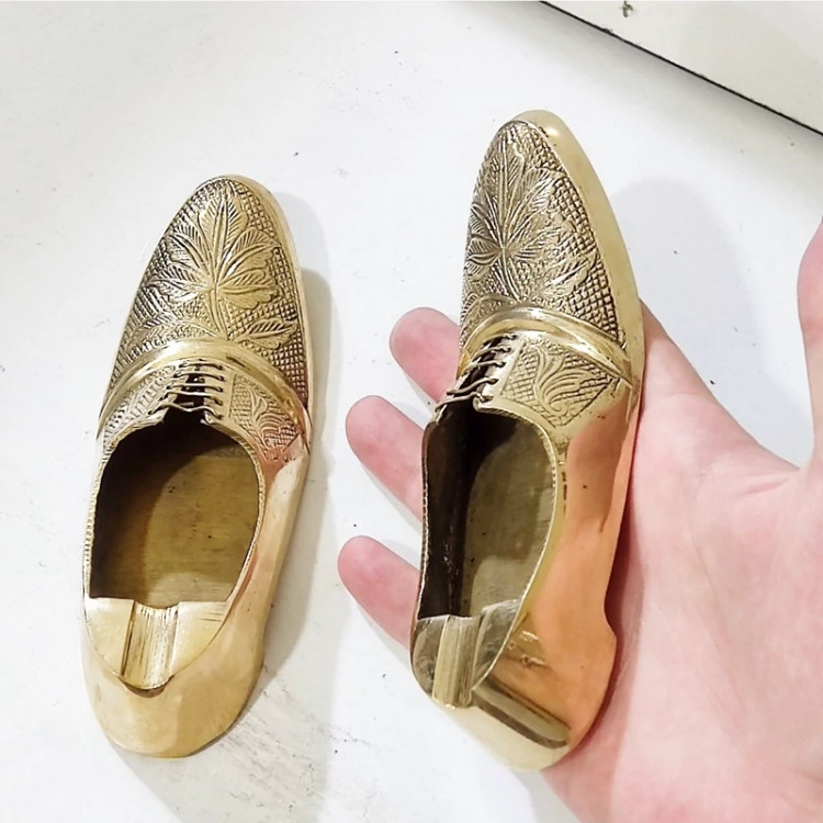 کفش برنجی هندی سایز بزرگ تمام قلم دست تزیینی دکوری با سطح کیفیتی درجه یک مناسب استفاده دائم و قابل شستشو بدون تغییر رنگ