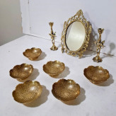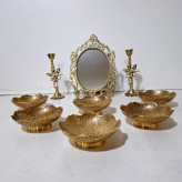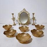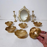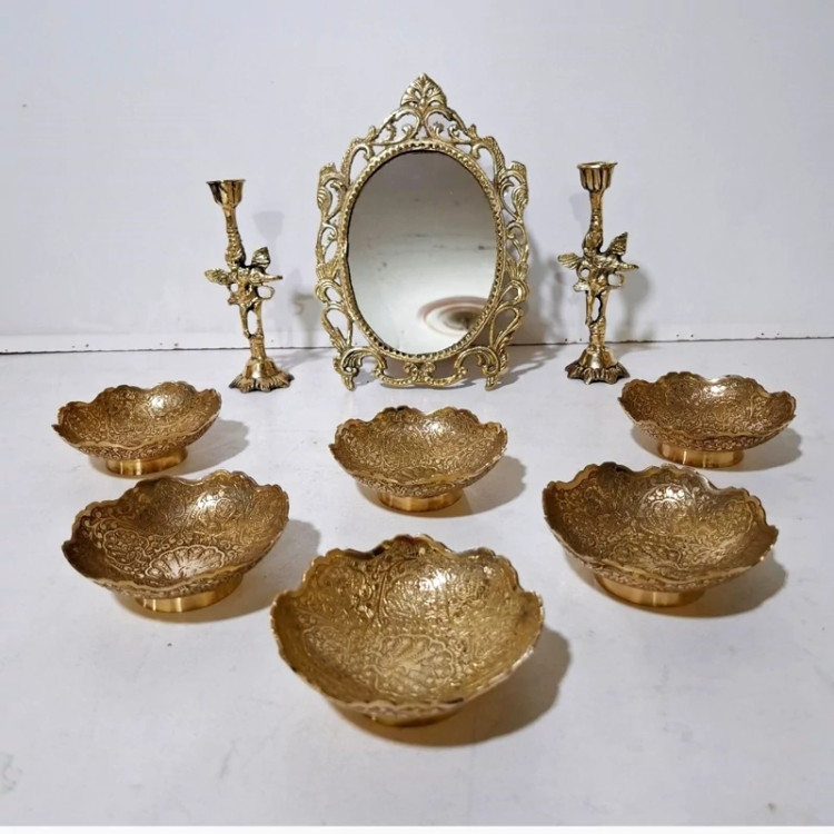 هفت سین برنجی هندی مدل نیم پایه با 6عدد پیاله و آینه شعمدان با سطح کیفیتی درجه یک مناسب استفاده دائم و قابل شستشو و زیبا
