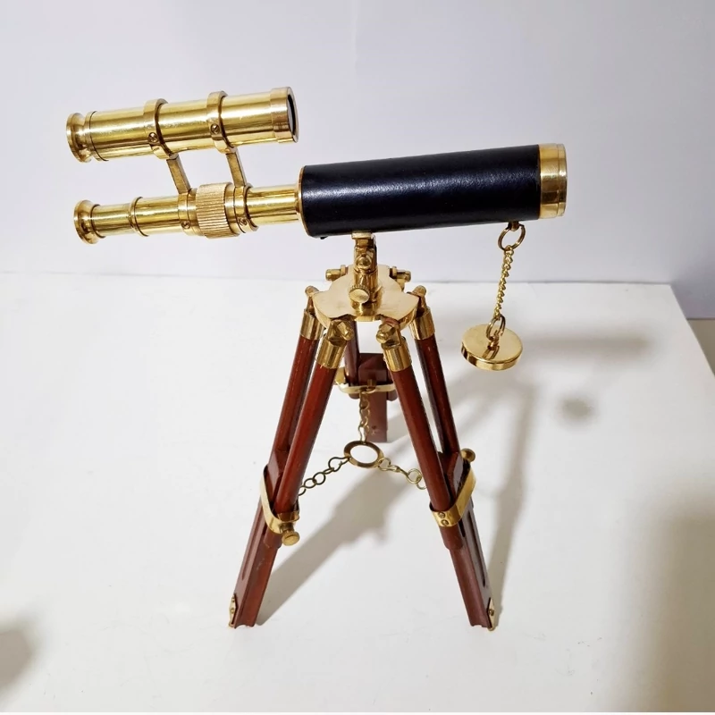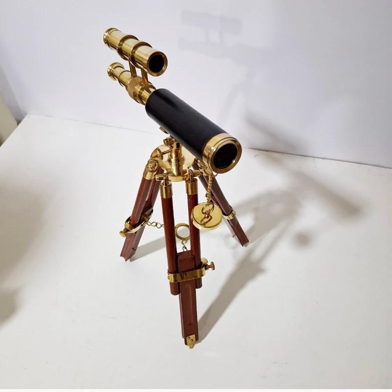 دوربین برنجی مدل تلسکوپی آنتیک پایه دار دارای 2 دوربین مناسب استفاده دائم و بسیار قوی با زوم قوی و دید بالا و بسیار زیبا