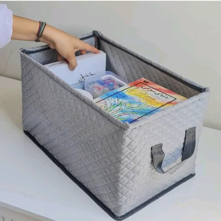 باکس نظم دهنده استنددار جمع شونده با طرح پارچه بری بری در سه رنگ قهوه ای مشکی و طوسی