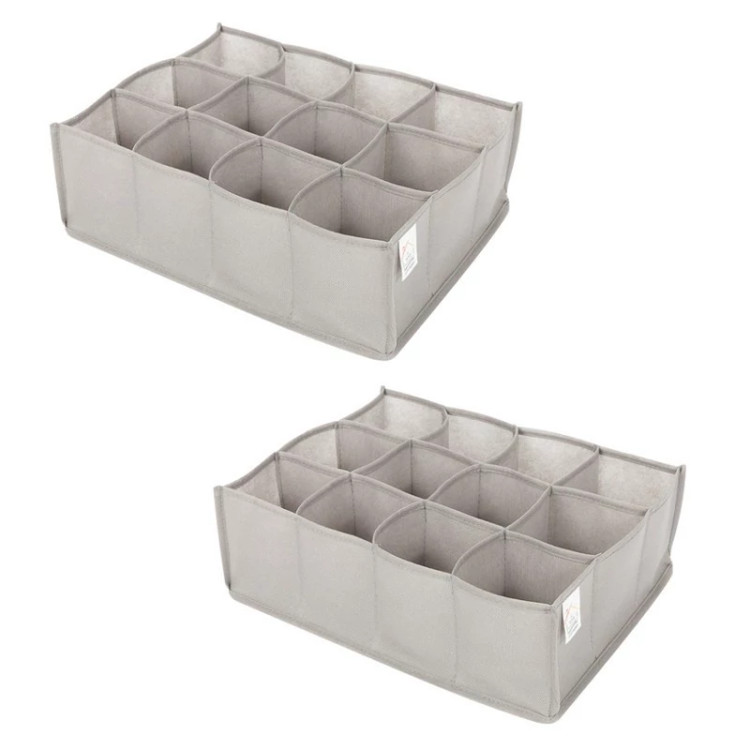 تو کشویی 12 خانه مای هوم بسته 2 عددی از جنس پارچه ضخیم و با دوخت با کیفیت جهت نظم دادن به لباس زیر, شال, جوراب و ... در کشو است.ابعاد این کالا 35x27x11 سانتیمتر است.نظم دهنده های پارچه ای وسیله های پر کاربردی هستند که به نظم دهی کشو و کمد شما کمک کنند.با توجه به وجود کالای غیر اصل در زمان تحویل کالا به نام و لوگو مای هوم دقت نمایید و در غیر اینصورت کالا را عودت دهید.