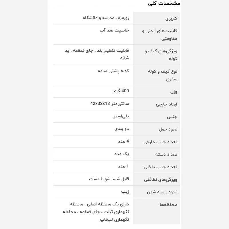 دستهبندی: کوله پشتی بر اساس کاربرد