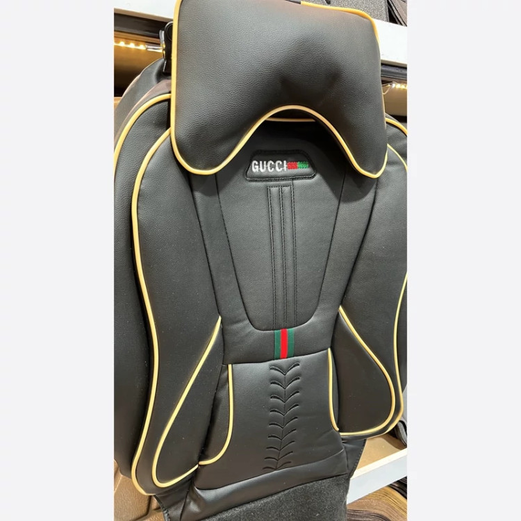 روکش صندلی پارس جدید(پرشیا) تمام چرم مشکی کرم وی آی پی خلبانی طرح گوچی