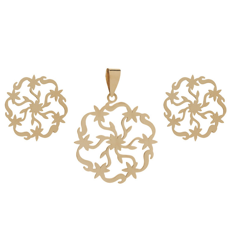 نیم ست مدل «ON09» از برند《زرلوکس》 《Zarlux》 یک انتخاب مناسب برای کسانی است که قصد دارند به عزیزان خود هدیهای ماندگار و ارزشمند دهند. این نیم ست از طلای 18 عیار با کیفیت بالا و ضخامت مناسبی ساخته شده است. طرح گوشواره و آویز گردنبند در این مدل دایره هلالی شکل است. اابته داخل این دایرهها، درختهایی هم قرار دارد. ابعاد هر یک از گوشوارهها در این نیم ست حدودا 1.5 × 1.6 سانتیمتر است. این گوشوارهها از نوع میخی است و قسمت دایرهای آن به گوش میچسبد. قفل گوشواره هم سوزنی است و استفاده از آن آسان خواهد بود. همچنین ابعاد آویز این ست هم 3 × 2.3 سانتیمتر و طرح آن دایرهای همراه با یک برگ داخل آن است. این طرح فانتزی و زیبای این نیم ست زرلوکس بهطورحتم موردپسند بسیاری از بانوان و دختران خوشسلیقه و جوان قرار خواهد گرفت.
