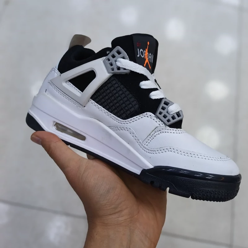 کتونی جردن 4 ساق دار زنانه و دخترانه رنگ سفید مشکی