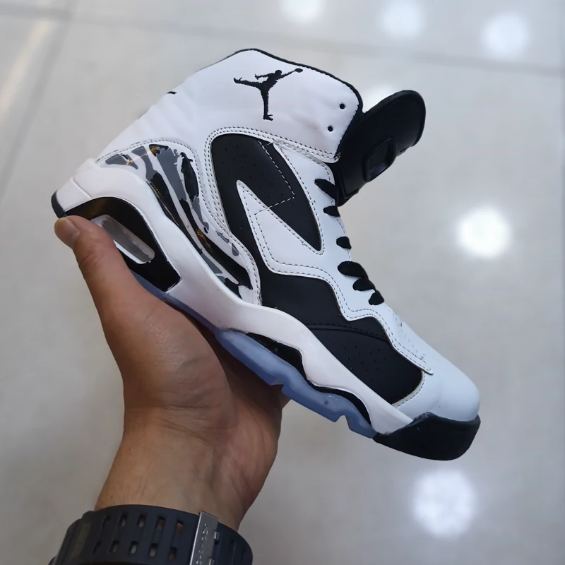 کتونی جردن 6 ام وی پی ساق دار مردانه رنگ سفید خط مشکی