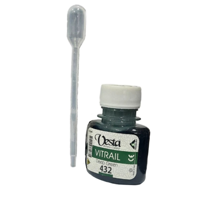 نقاشی روی شیشه یا ویترای هنری است که توسط رنگ های ویترای بر روی ظروف شیشه ای جهت زیبا شدن این ظروف انجام می گیرد. ویترای ۴۰ میلی لیتری رنگ سبز تیره برند وستا، مقاوم در برابر نور ، همراه با قطره چکان