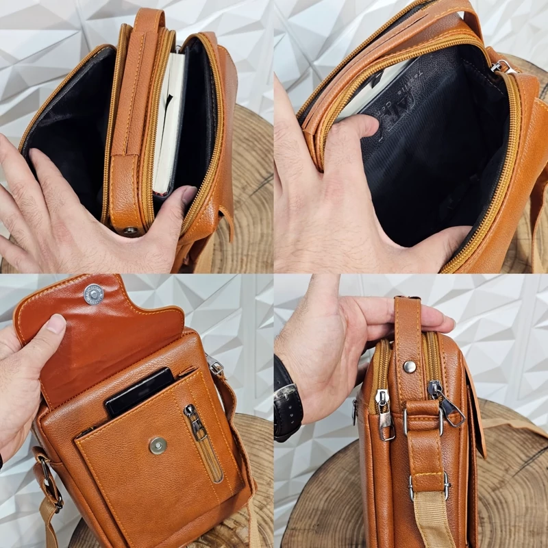 کیف دوشی مردانه چرمی جلو سرخونه کد 2030